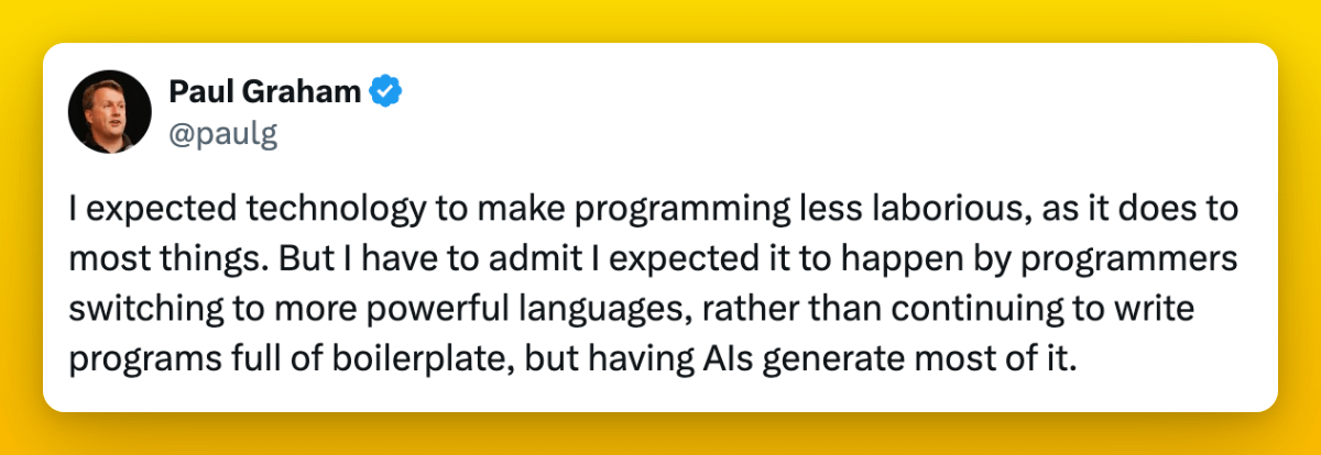 Like the LLM example above, we can build tools that get AIs to write all the boilerplate for us over and over again, but the question is, should we be letting them do that when they could be doing other more useful things? LLMs are great at producing a wealth of new ideas quickly. Why not build tools that let AIs help us in this regard?