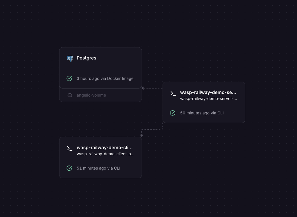 This is how your Wasp app looks in the Railway dashboard after deploying